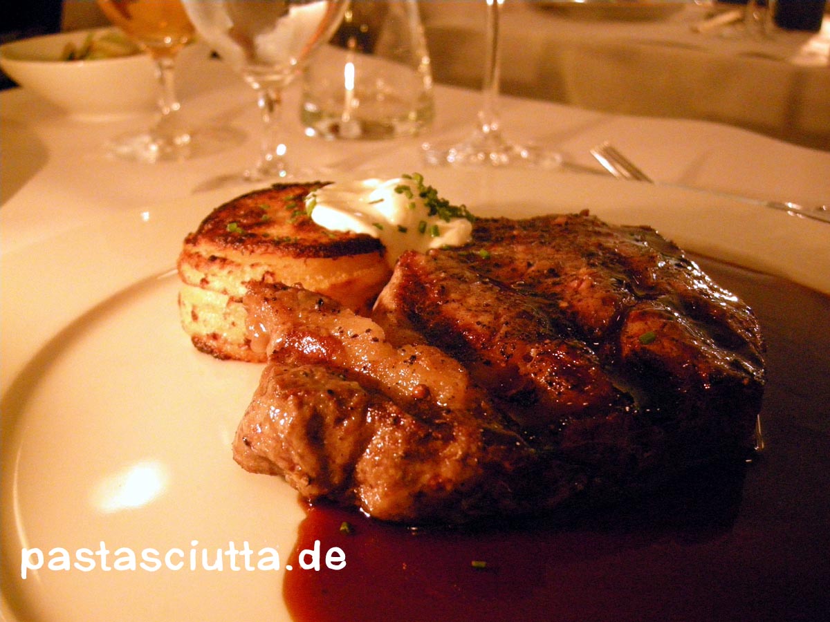 Rindfleisch in Schweinelecker: Entrecôte mit Teriyakisauce. Leider ohne Fritten. Trotzdem perfekt. |