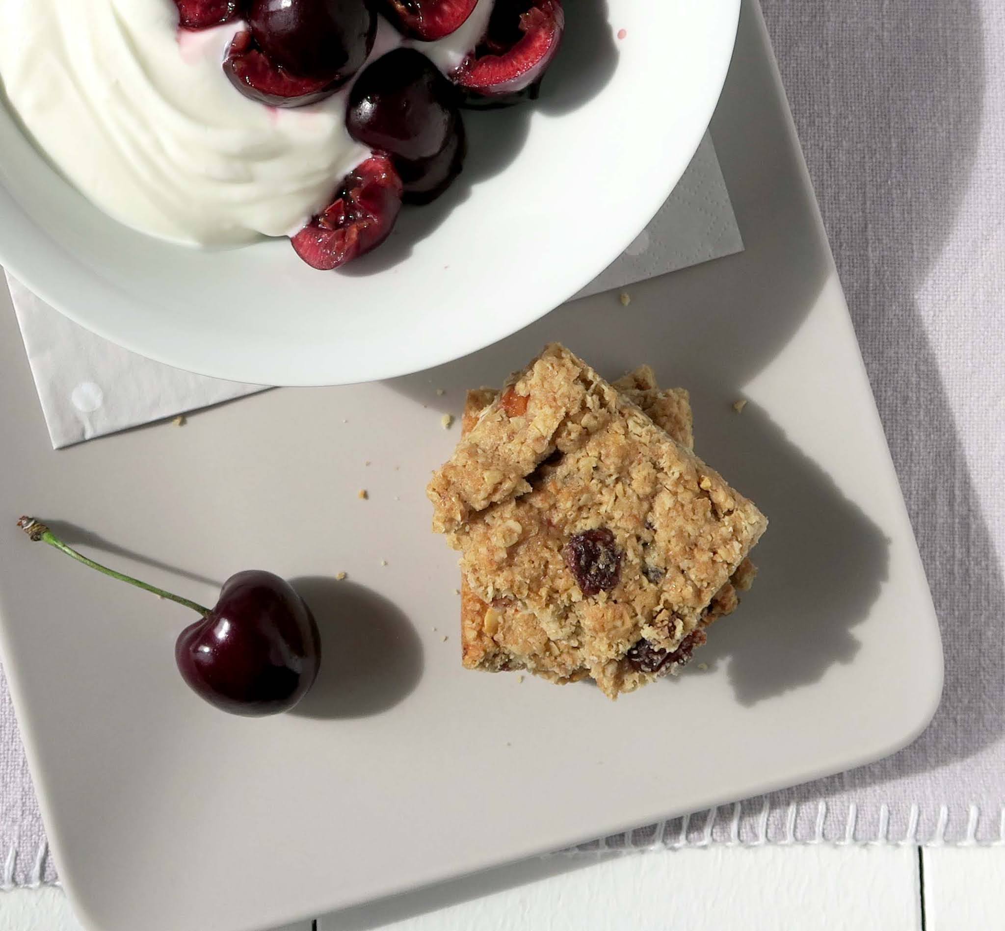 Als Nut-Fruitmix verwende ich Ültje Studentenfutter mit Cranberries. Natürlich geht da auch jede andere Mischung aus Nüssen und Trockenfrüchten / Rosinen. Weitaus besser als das selbsttreibende Mehl in dem englischen Rezept gefällt mir Dinkelvollkornmehl, weil es einfach den Hafergeschmack so wunderbar unterstützt. Bisher habe ich die Flapjacks ohne Backpulver oder ähnliches gebacken. Vielleicht werde ich Zukunft mal eine Prise Natron an den Teig geben, auch wenn das nicht notwendig ist. Es könnte aber den Geschmack ein bisschen beschleunigen, so wie das bei den Digestives auch der Fall ist.