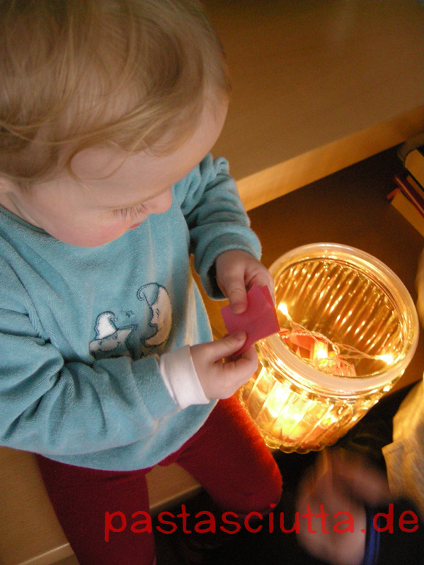 Die Losnummern habe ich auf kleine Zettelchen geschrieben. Dann habe ich eine Glücksfee gesucht.