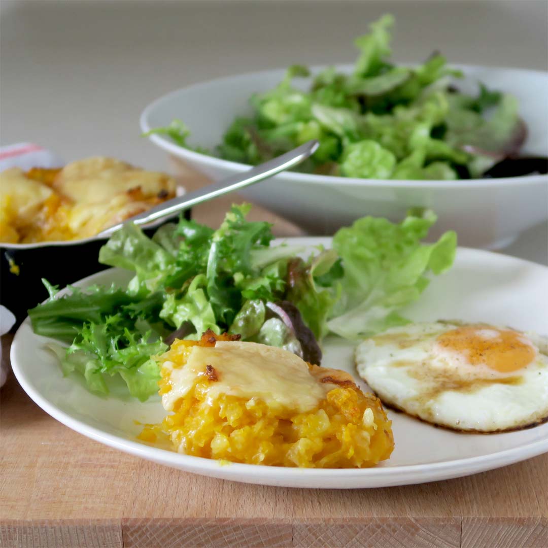 Zum Gratin passt sehr gut ein Spiegelei und ein Salat.