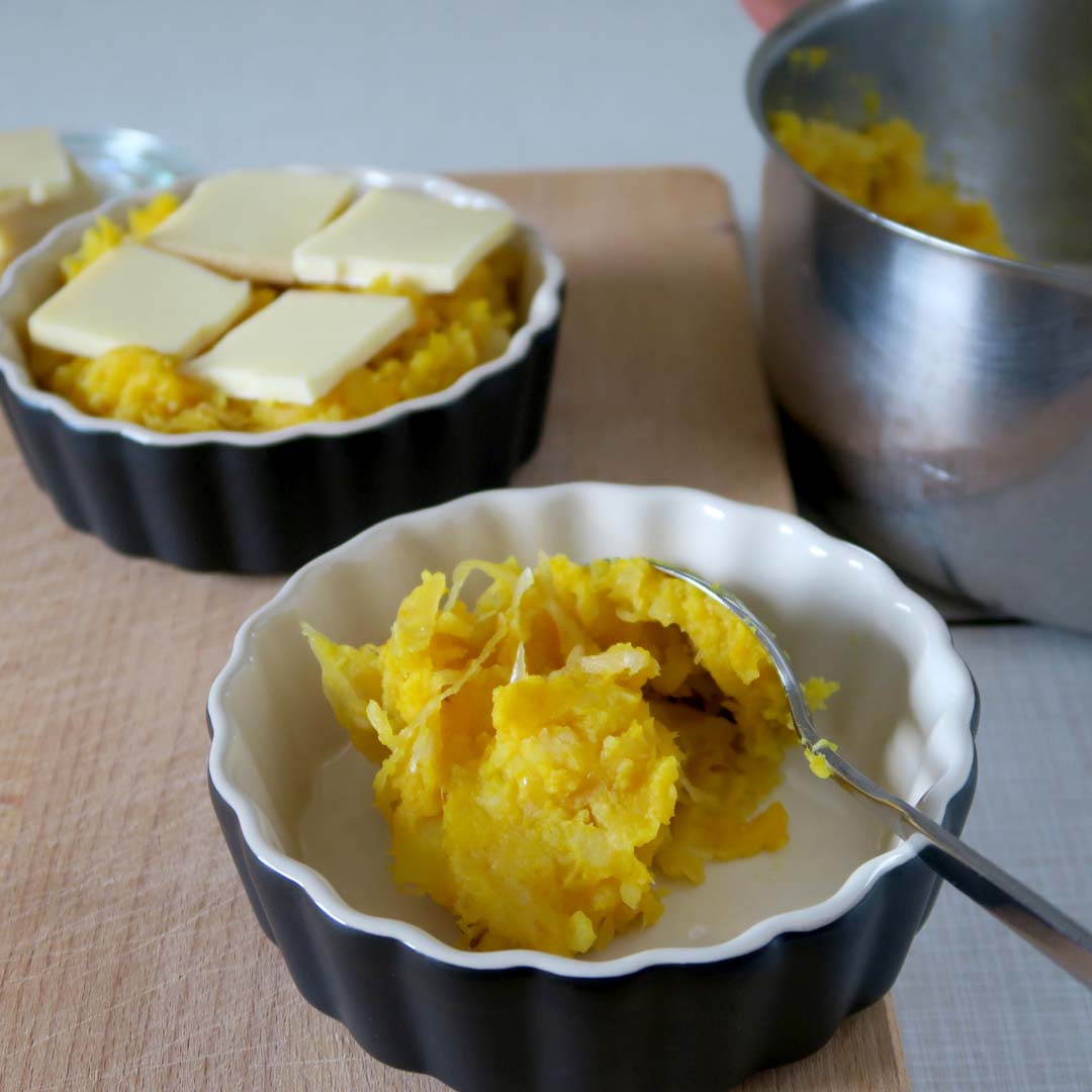 Neben den schon erwähnten Vorzügen ist Hokkaidokürbis auch ganz gut für die Vorratshaltung geeignet. Im Ganzen und in kühler Umgebung lassen sich die Früchte ein paar Wochen lagern. Aber auch gegart, als Mus oder als Ofengemüse überstehen sie, luftdicht verpackt, ein paar Tage im Kühlschrank.
