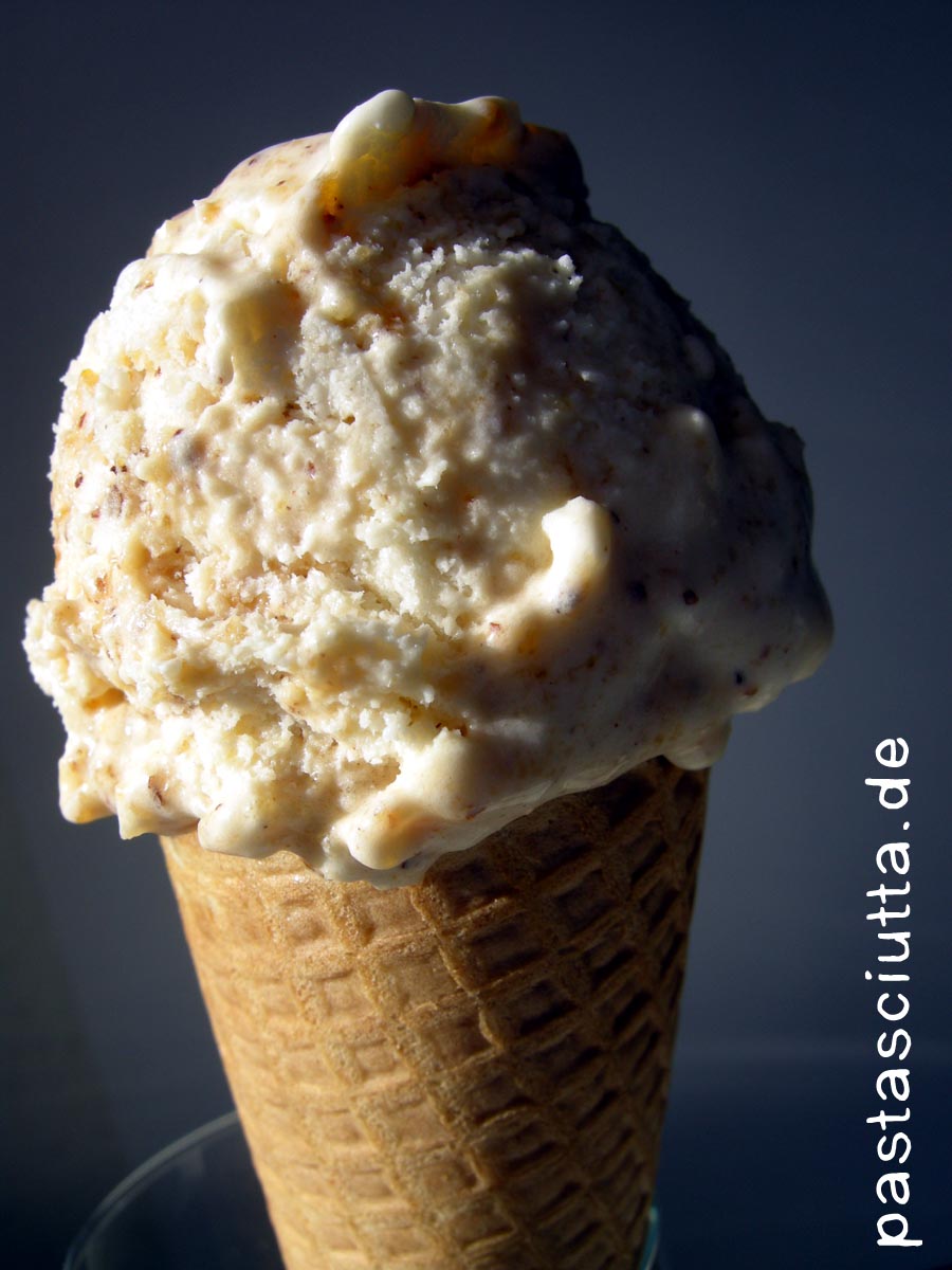 Ja, ja, ich weiß… Ich finde meine Eiscremes alle immer so gut. Vielleicht bin ich auch nicht sehr kritisch. Aber, das hier ist wirklich… Hey, kennt Ihr Praliné? Damit ist nicht das Konfekt gemeint, sondern eine Grundzutat vieler französischer Süßspeisen. Im Grunde handelt es sich um pulverisierten Haselnusskrokant. Wenn man etwas ähnliches aus Mandeln herstellt, heißt es im Französischen wohl Pralin, wenn ich Wiki da richtig verstehe. Aurélie nennt ihr Krokantpulver mit Mandeln und Haselnüssen ebenfalls Pralin.